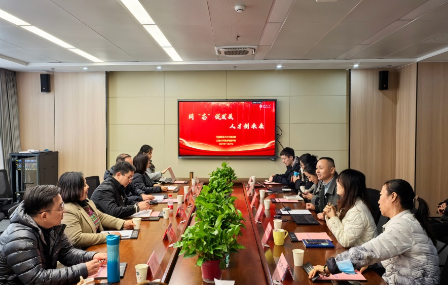 为深入学习贯彻落实党的二十届三中全会精神,强化党建示范引领作用,推动校企之间沟通交流共谋发展。11月27日,公司党委与华润微电子代工事业群精益职能党支部组织开展“同‘芯’促发展,人才创未来”党建促业务交流活动。华润微电子代工事业群党委委员、纪委副书记肖魁,工艺研发党支部书记刘新新,人力资源与行政部总监江虹,精益职能党支部书记左玲,william威廉中文官网公司党委书记耿向阳,党委副书记、副经理糜海燕,电子封装系党支部书记南海燕、系主任于平平,微电子系党支部书记赵琳娜出席会议,员工代表、公司师生代表30余人参加会议。