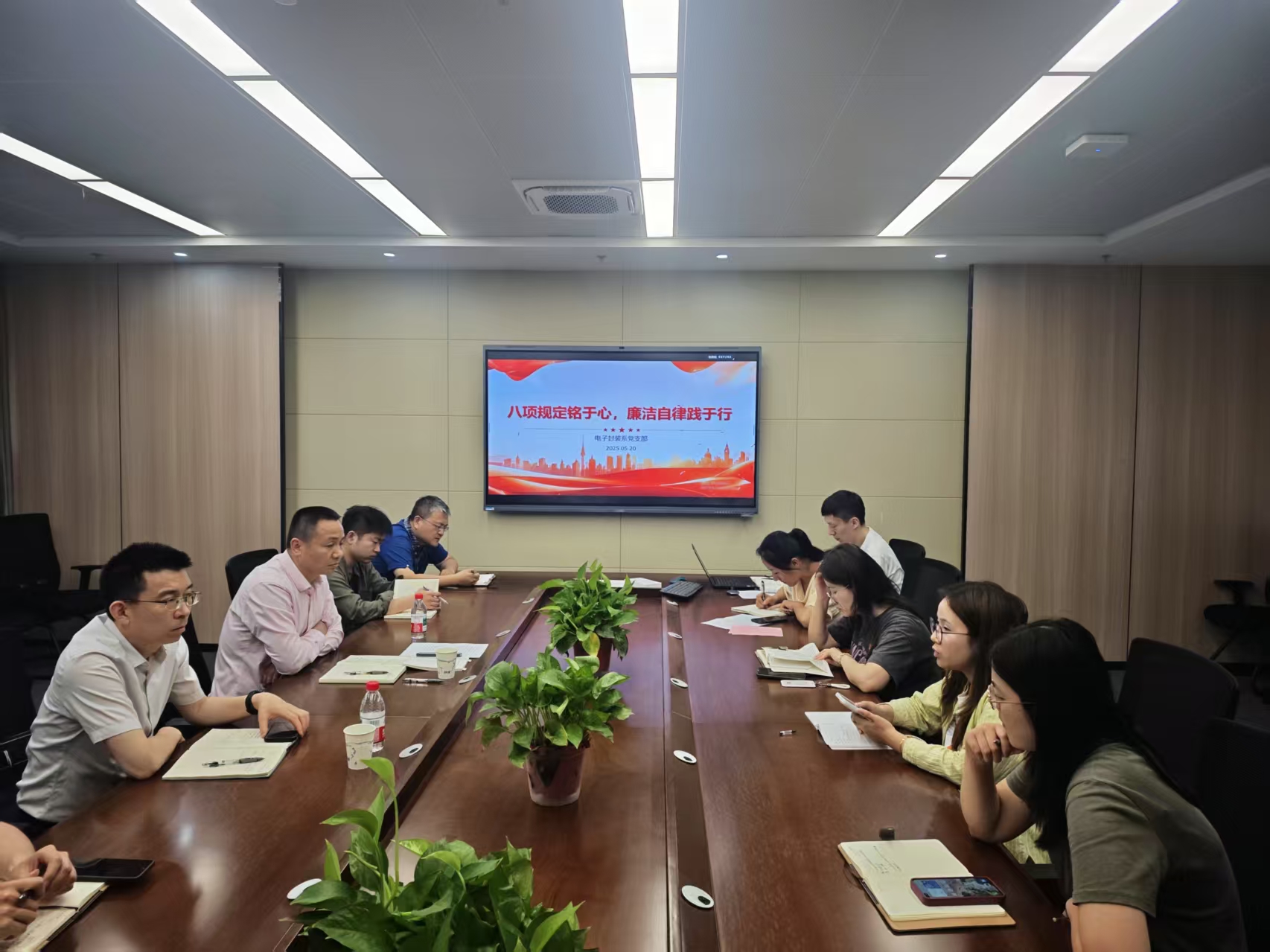 黄敏在总结点评指出,自中央八项规定实施以来,党中央以鲜明的态度、巨大的力度,锲而不舍地将作风建设推向深入。在此背景下,我们一方面要持续加强学习,深刻领会中央八项规定精神实质,将其不折不扣地贯彻落实到实际工作之中,让严守纪律规矩成为思想自觉和行动自觉。另一方面,要立足电子封装这一具有广阔发展前景的朝阳学科,充分发挥学科优势和青年党员的活力与创造力。支部党员同志都很年轻,更要立好规矩、养好习惯,规范使用科研经费,严守学术道德底线。勇挑重担、开拓创新,书写属于新时代青年党员的奋斗篇章。