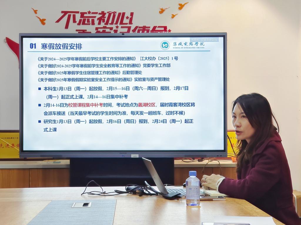 会上,糜海燕代表公司向留校员工表达了关心和问候,并详细讲解了寒假放假安排、宿舍管理工作安排、假期安全注意事项以及公司值班安排等相关内容,要求全体留校员工务必增强安全责任意识和自我保护意识,遵守公司各项留校管理规定,坚守安全底线。同时,她鼓励同学们有效利用时间,积极投身于科研探索、实习实践、竞赛准备等各项活动中,力求度过一个平安、丰富且充实的寒假。