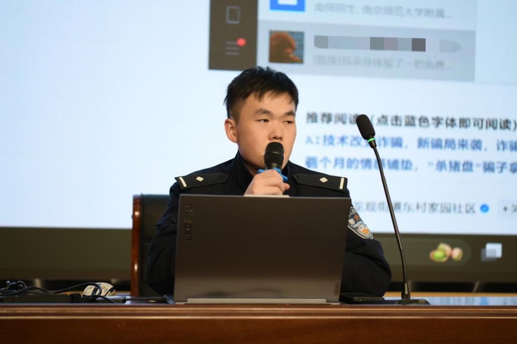 青阳派出所的警官们借助一系列真实案例,向同学们揭露了诈骗分子精心设计的“花式套路”。从网络裸聊到虚假约炮,从追星骗局到购物陷阱,生动的视频资料和深入浅出的讲解让同学们深刻体会到诈骗行为的严重性和潜在的危险。警官们着重提醒大家,在日常生活中要坚决做到不点击未知链接、不轻信陌生来电、不随意透露个人信息,尤其在转账汇款时要多次核实信息,确保资金安全。糜书记表示,希望同学们将此次学到的反诈知识牢记于心,并积极向身边的亲朋好友传播,共同为构建平安校园贡献自己的力量。