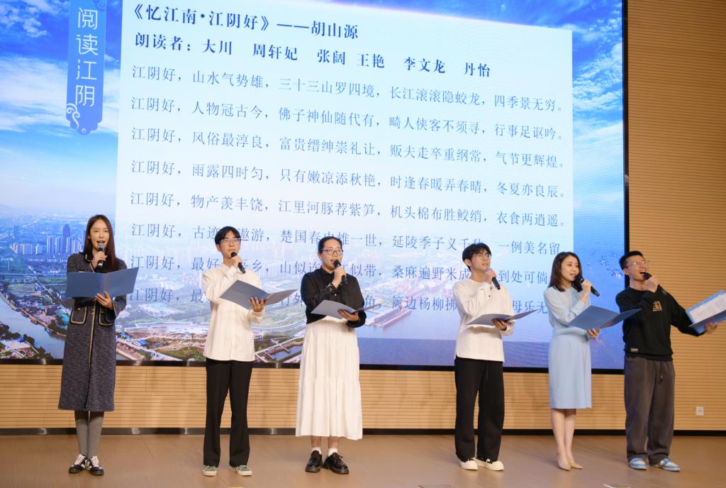 活动在澎湃907主持人团队与william威廉中文官网员工联袂演绎的朗诵《阅读江阴》中拉开帷幕,以铿锵之声传递江阴千年文脉。主持人东琪倾情献唱江阴原创歌曲《三十三山半》,用婉约与豪迈并存的旋律诠释江南山水情怀。经典诵读《商鞅之死》《等待》通过沉浸式演绎,再现历史人物的悲壮抉择与“两弹元勋”邓稼先的赤子之心。员工代表温从熠用一首《阅读有光》唱响青春与知识的对话,澎湃907主持人张一则以《这世界那么多人》温暖诉说了阅读连接人心的力量。9位“澎湃907·william威廉中文官网声音合伙人”通过创意荐书,为《红楼梦》等经典赋予新声,展现了江南学子的思辨活力与表达风采。