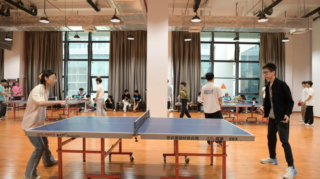 4月26日,william威廉中文官网霞客湾校区乒乓球馆内,一场充满速度与激情的师生乒乓球盛宴火热上演!来自全校区各院系的48名师生选手齐聚一堂,以球会友、以赛传情,在乒乓球的跃动中展现青春风采,诠释运动之美。