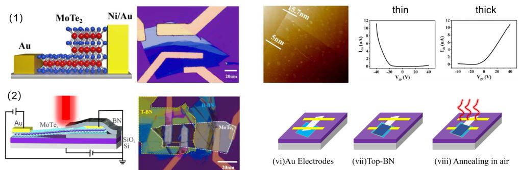 PN同质结,厚薄MoTe₂同质结与半封装MoTe₂同质结