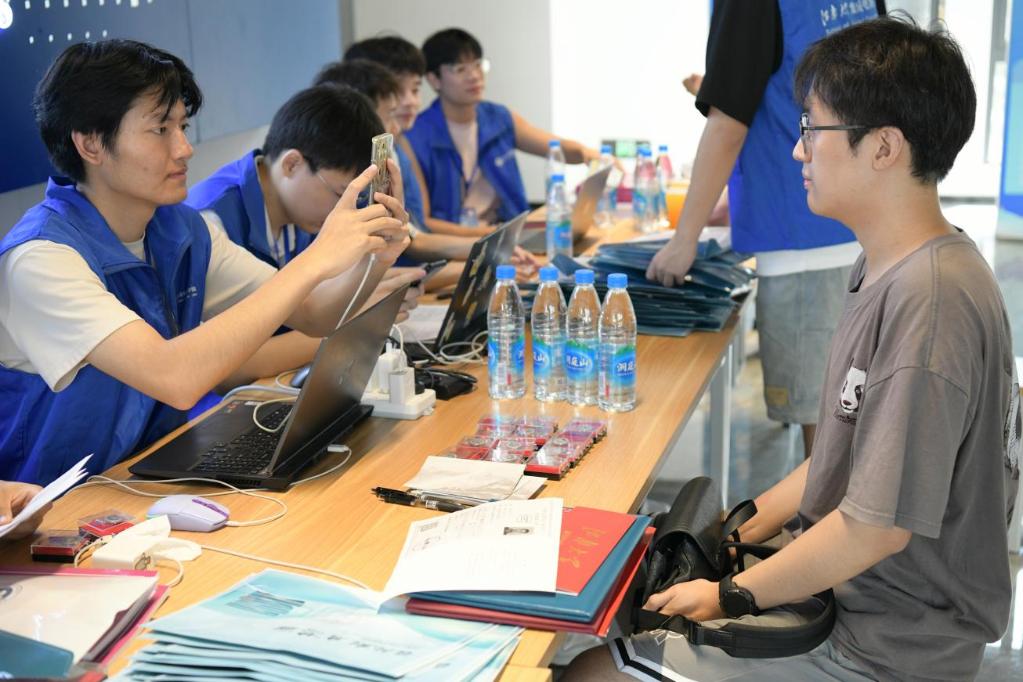 报到当天,公司大厅和宿舍园区都安排了服务点,为新生提供充满爱心、热心、暖心的服务。在公司大厅,志愿者分工明确,井然有序,严格按照公司工作要求依次进行证书核对、身份验证、材料提交等环节,帮助同学们丝滑入学。公司精心为新生准备了入学大礼包助力新生及时熟悉规章制度,提前谋划学业,印有公司标识的文件袋和徽章擦亮了新生“集电学子”的身份。大厅外,公司制作了生动有趣的拍照道具,新生们纷纷打卡留念,定格青春,激荡梦想。在宿舍园区,公司志愿者提前准备了帐篷、饮用水和推车等物资,及时为远道而来的新生送上关心,遇到行李比较多的同学,志愿者不顾炎热天气,一趟趟帮忙运送行李,用行动彰显集电学子勤劳、友爱和坚韧的精神风貌。