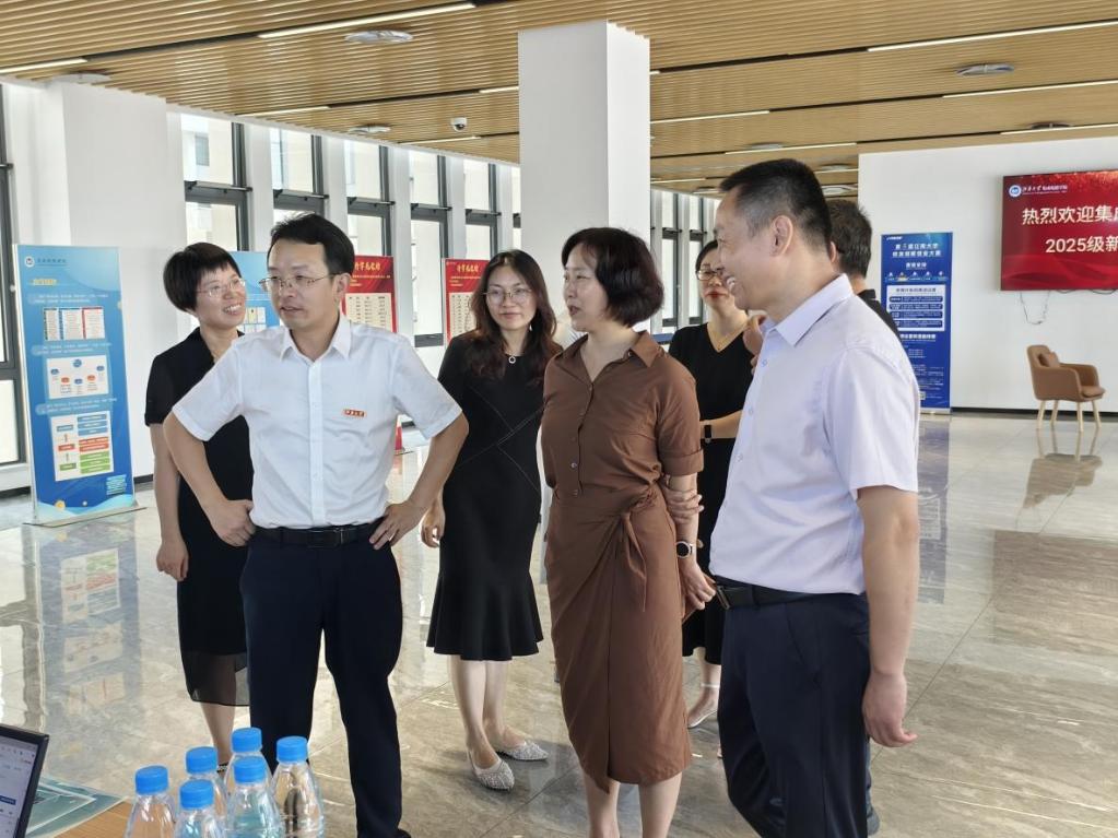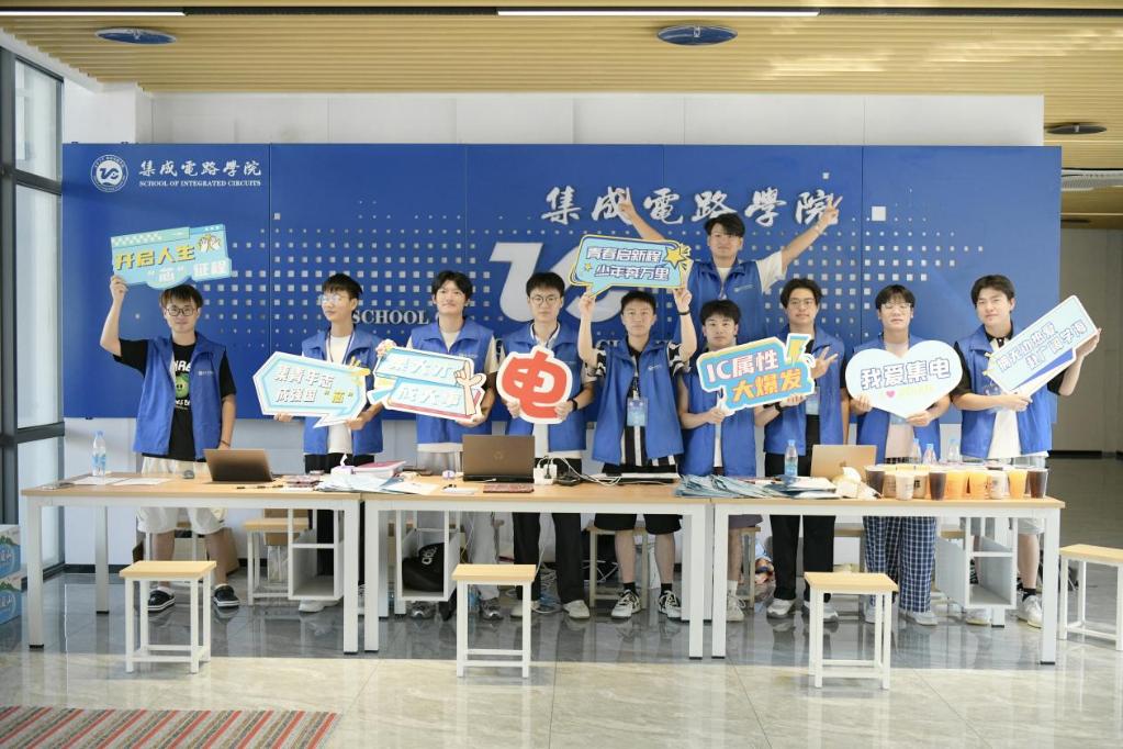 迎新期间,公司党委常委、副董事长李兆丰,校区办主任王珏,董事长办公室副主任陈艳君,校区办副主任刘虹等一行来到迎新报到现场指导工作,公司党委书记耿向阳、经理顾晓峰,副书记、副经理糜海燕介绍了公司迎新工作情况,并围绕学科发展、公司产品等工作进行沟通交流。李兆丰与新生亲切交流,询问报到情况,关心衣食住行,鼓励在场的学子们勇于探索,敢于创新,不惧挑战,在集成电路产业赛道中奋起直追。