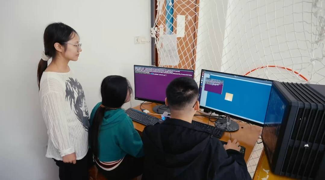 团队成员对在服务器进行跟踪降落联合仿真实验