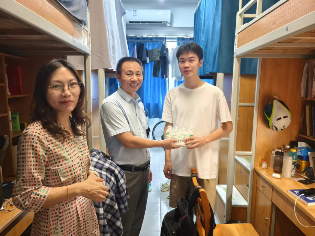 在员工宿舍和研究生实验室,老师们与员工亲切交流,提醒同学们提高安全防范意识与自我保护意识,关注假期宿舍和实验室安全,并为留校员工一一送去清凉饮品。在与留校备战考研的同学交流中,耿向阳结合近几年的考研形势,建议同学们合理选定目标高校,掌握有效的学习方法,作息规律、张弛有度,心怀期许、坚定信心。走访中,耿向阳对同学们不畏高温酷暑坚持开展科研的精神表示肯定,他希望同学们主动加强与导师的沟通,以积极的态度和不懈的努力追求学术上的进步。他还详细询问了各实验室搬迁准备情况,提醒师生关注搬迁安排,鼓励大家齐心协力推动搬迁工作有序进行。