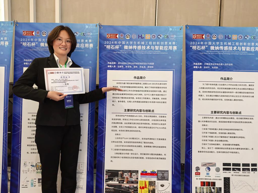 今年7月,团队携带第一款作品——微波整流+传感一体式压力传感系统前往苏州参加省赛答辩,顺利摘得省赛一等奖并获得全国决赛资格。之后,团队成员又进入了紧张的备赛阶段,经过一个多月的不断调试,终于打磨出第二款参赛作品,于8月赴烟台参加全国总决赛。