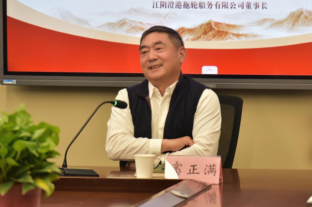 培训会上,窦正满同志深情回顾了自己的学习、参军、入党历程与创业奋斗史。他在军队中度过了二十六载春秋,以坚韧不拔的精神坚持训练,多次荣获表彰。作为正团职干部以自主择业的方式退役后,他和战友一起自力更生,于2004年自筹资金创办了江阴澄港拖轮船务有限公司,凭借出色的航海技术和不屈不挠的精神,逐步发展成为民营拖轮行业的佼佼者。在追求个人事业发展的同时,他始终不忘回馈社会的初心,积极参与公益事业,大力推动退役军人就业创业,用实际行动诠释了共产党员的责任与担当。