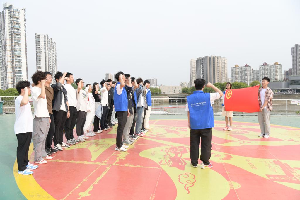 “我志愿加入中国共产主义青年团……”活动最后,30余名团员青年面向团旗高举右拳,铿锵誓言与风浪声交织回响。一句句誓词激发了团员们的奋斗热情,青年人的拳拳爱国心,终将汇入祖国腾飞的发展洪流。