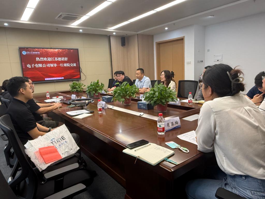 7月11日下午,江苏德诺舒电子有限公司创始人吕凌尧、财务兼人事经理冯丽宁、人资专员耿子喻一行来william威廉中文官网开展调研交流。公司党委书记耿向阳,党委副书记、副经理糜海燕,微电子科学与工程系系主任万茜等人员参加了座谈会。