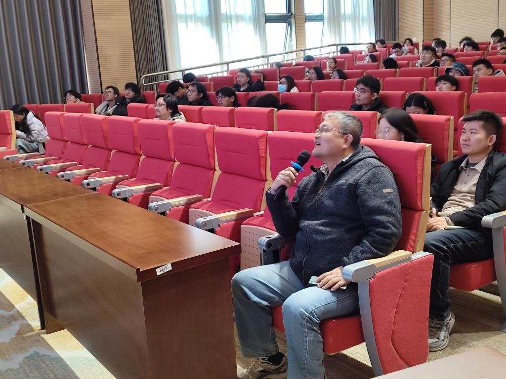 马博以“MEMS技术在传感、通信和计算领域的产业化应用”为主题展开讲座,他首先回溯MEMS技术发展历程并介绍了该项技术的工艺和材料基础。据悉,MEMS即微机电系统技术,它融合了机械、电子与材料科学的交叉领域,正以革新性姿态重塑各个行业的技术生态,是现实模拟世界与虚拟数字世界之间需要互动的桥梁。未来,新材料、新工艺、AI世界将为MEMS技术赋能新的创新动力。其后,马博分别从传感、通讯、模拟计算、硅光技术四个方面详细讲解了MEMS技术在这些领域的产业应用。在传感方面,马博分析了MEMS应用在压力传感器、加速度传感器、角速度传感器、封装、热电堆、非制冷红外等技术中的原理和效果;在通讯方面,马博讲解了SAW技术、FBAR技术、SMR技术的特性与应用领域及关键技术点;在模拟计算方面,他提出MEMS谐振器的机械振动频率可被用于模拟乘加运算,显著降低AI推理的能耗;在硅光技术方面,马博指出,MEMS与硅光子学的结合,通过将微机械结构与硅基光电子器件集成,实现了光信号的动态调控和高密度集成,两者的协同推动了光子器件的小型化、动态可重构及大规模集成,催生了高性能光子集成电路(PIC)的发展。最后,马博展望MEMS与半导体产业、前瞻二维材料、AI等领域结合的巨大潜力,引发在座师生对相关领域研究方向与未来发展机遇的深入思考。讲座结尾,师生们踊跃互动,积极与嘉宾探讨交流,整场讲座氛围热烈,师生均收获满满。